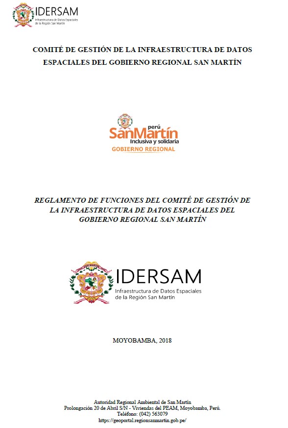 Documento de Gestión que tiene por objeto regular la estructura orgánica y administrativa, y el funcionamiento del Comité de Gestión de la Infraestructura de Datos Espaciales del Gobierno Regional de San Martín.